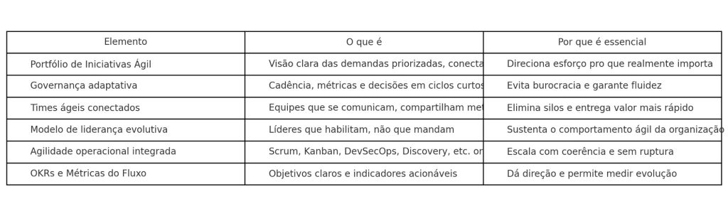 É sobre alinhar a organização inteira em torno de entrega de valor frequente, aprendizado contínuo e decisões descentralizadas com responsabilidade compartilhada.